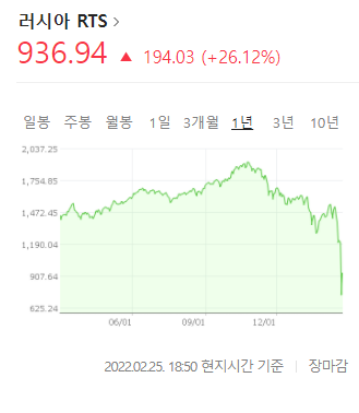그렇게 러시아 증시도 엄청 폭락했습니다.