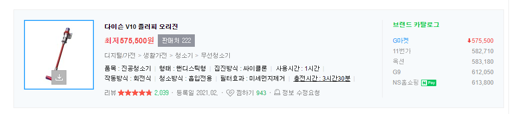 개인적으로 가전 구입할 때는, 우선 네이버 쇼핑과 다나와 에서 순위를 좀 봅니다.