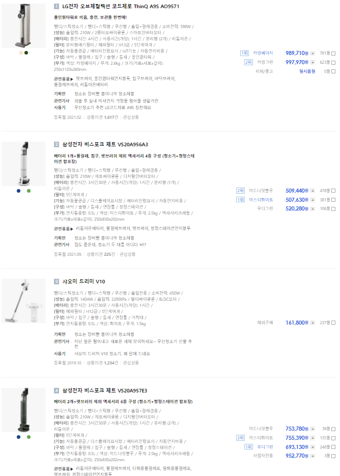 15위까지 보니 나머지는 삼성 비스포크 제트 다른버전 + 중국발 카피제품들이라