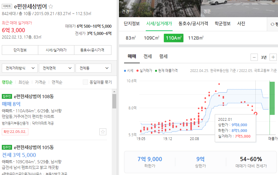 7.5억 실거래로 떨어졌고,현재 매물도 그 시세부터 시작하고 있습니다.