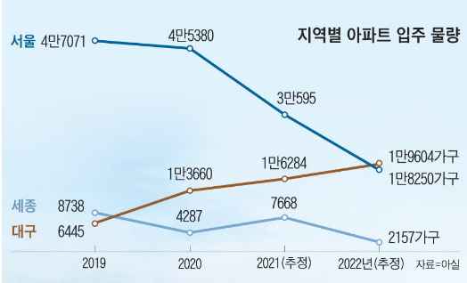 대구가 그 작은 시장에서 서울보다도 입주 물량이 늘어나는 기현상?으로 난리이지만,