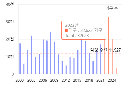대구 아파트 공급예정량도 적정 수요보다 2020년 이후 너무 많은 편이지만,