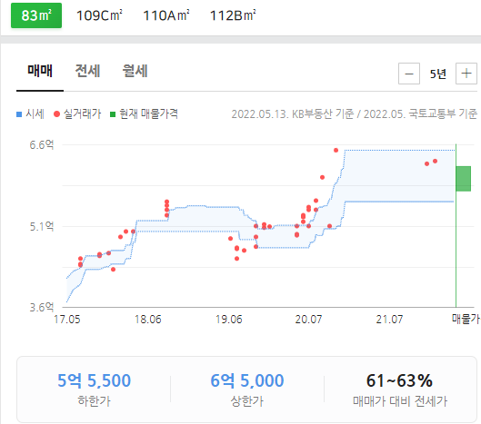 그당시에도 전세가 6억 정도 밖에 안되어 과한 매물 호가라 생각했는데,
