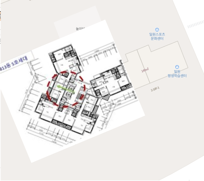 대표적으로 3개 라인만 나와있지만, 디에이치자이개포가 단지 배치도를 보면 엘리베이터와 세대 구성 비슷한 곳이 많아, 아마 여러 곳에서 불편감 느꼈을 겁니다.