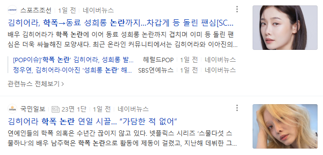 "삥 뜯은 건 인정, 폭력서클은 아냐"…학폭논란 김히어라의 해명 (naver.com)