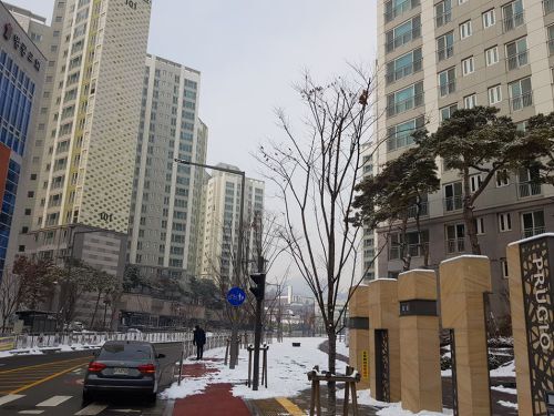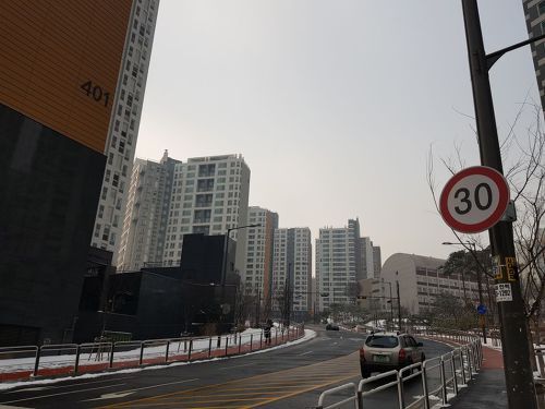 두산아파트를 관통해 나와 걸으니 1단지 끝쪽이 보입니다.
