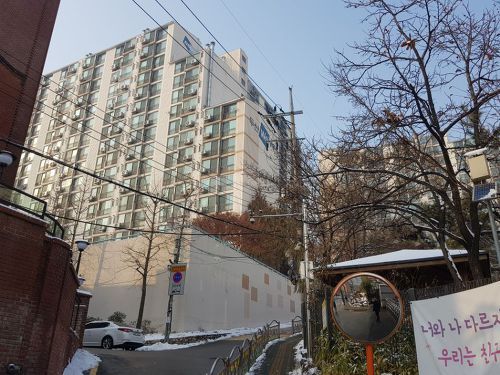 경사따라 한성중/고등학교 앞에서 본 모양. 4단지/2단지 모습이 보입니다.
