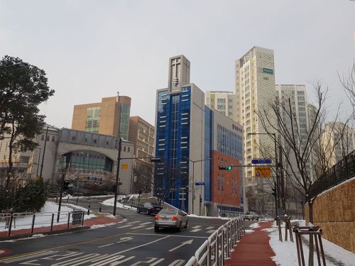 좀더 올라가니 교회와 아현역 푸르지오가 보입니다.