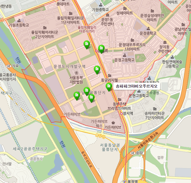 송파구 문정동에 위치한, 3,636세대 오피스텔/999세대 아파트로 이뤄진 대단지입니다.