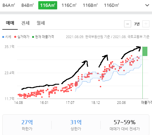 35평 매매시세 과거그래프인데, 2016년부터 갑자기 급하게 계속 오릅니다.