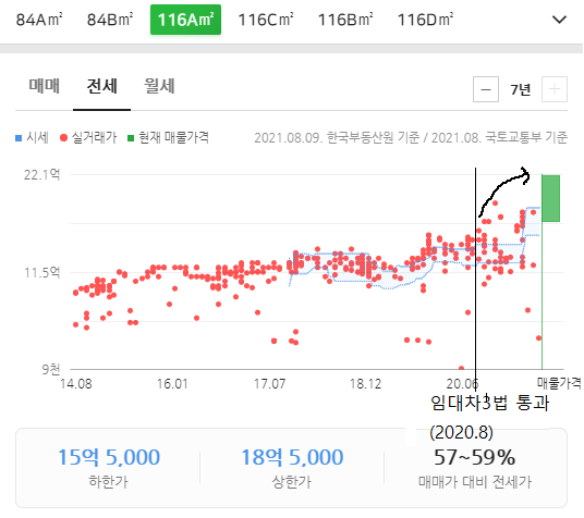 임대차3법으로 전세가격을 올려버려(2020년 8월 통과) 매매가격을 더 올려주었고