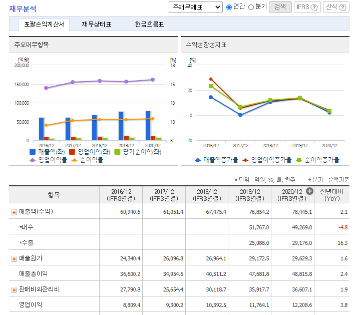 희안하게 매출액 대비 영업이익률도 10%가 넘고.