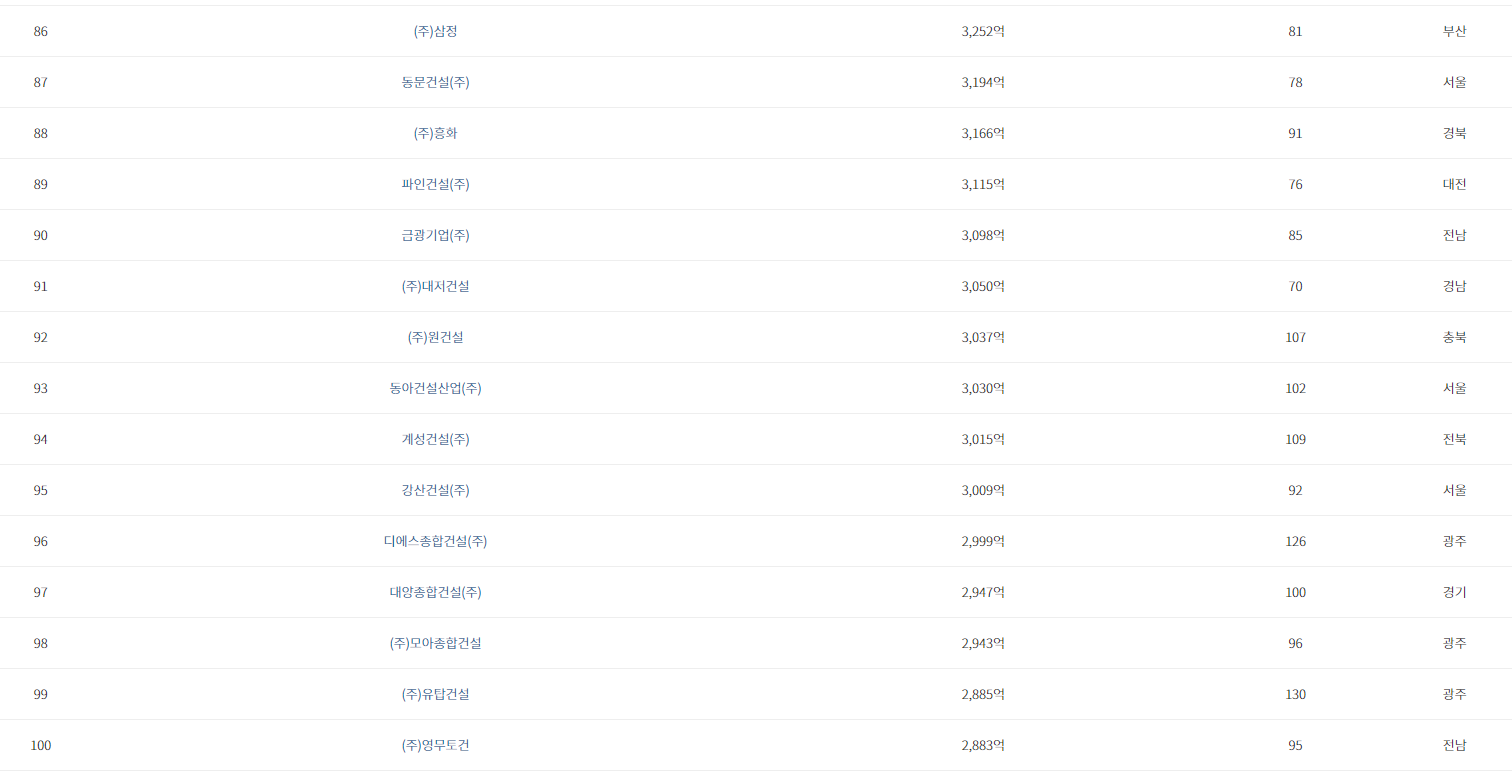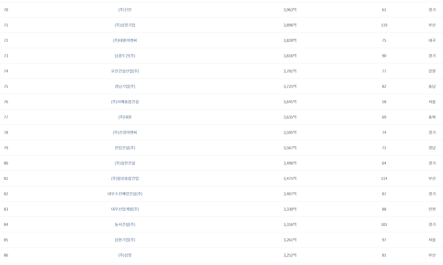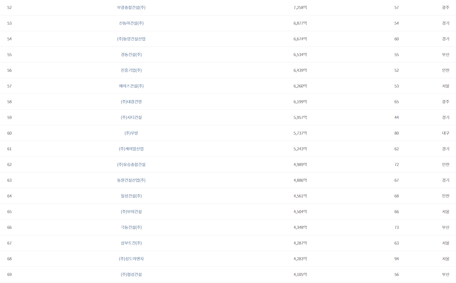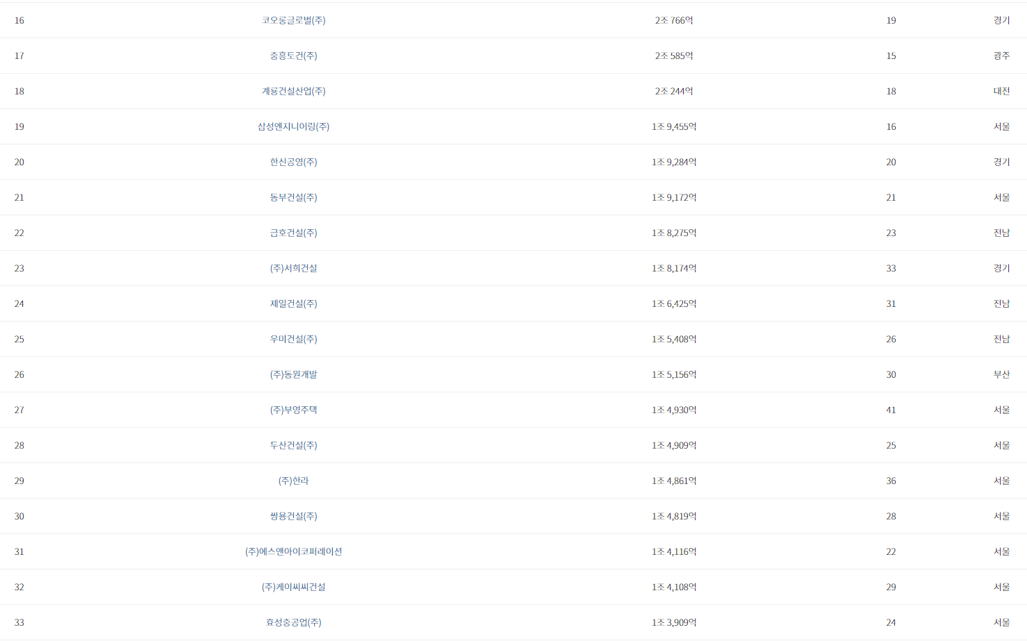 대한민국 건설사들의 시공순위를 분석해보았습니다.