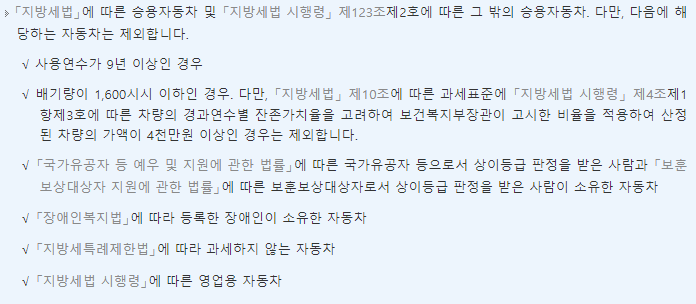 그리고 자동차 관련하여 제외 기준은