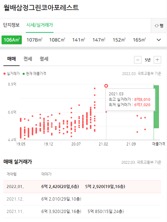 약 1년전에 32평 실거래가가 8.8억을 넘었었는데,